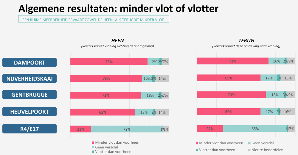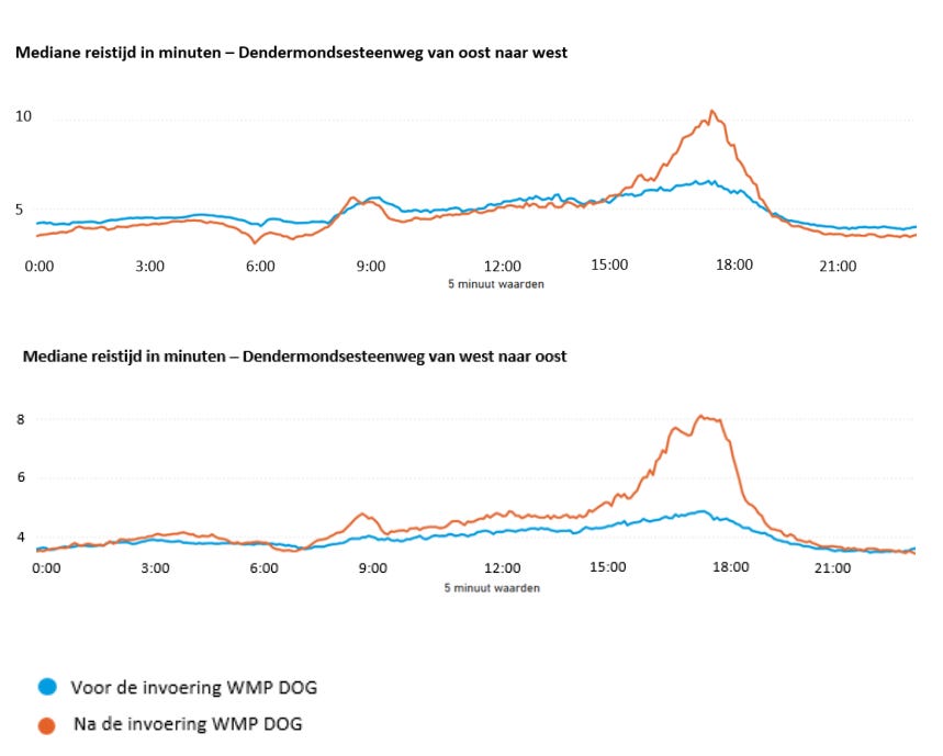 Op de Dendermondsesteenweg (het Gentse stuk) kon men echter wél een stevige daling van de snelheid (en een stijging van de reistijd) waarnemen.