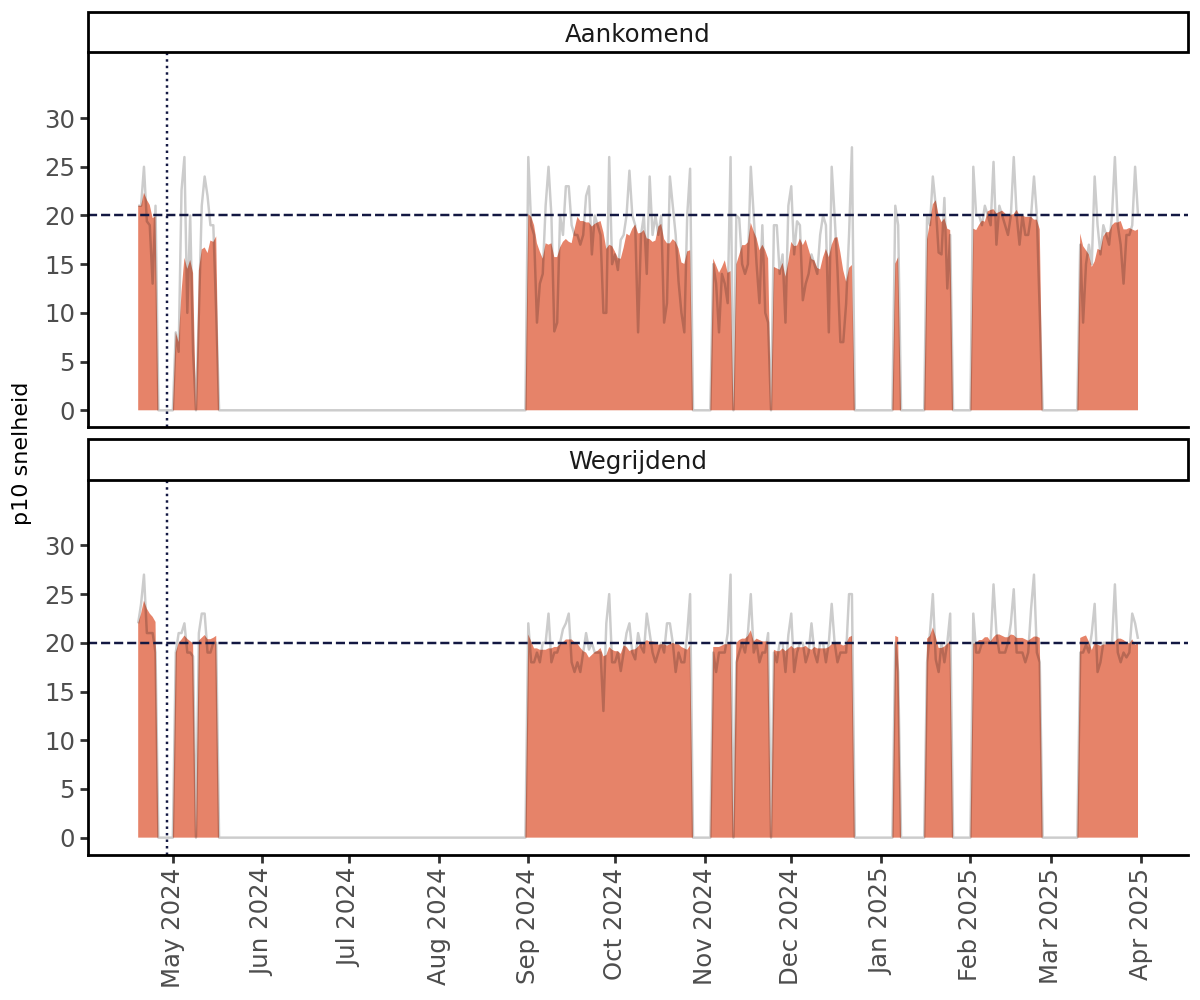 De werken ter hoogte van de Colruyt midden december ‘24 deden de mediaansnelheid sterk dalen.