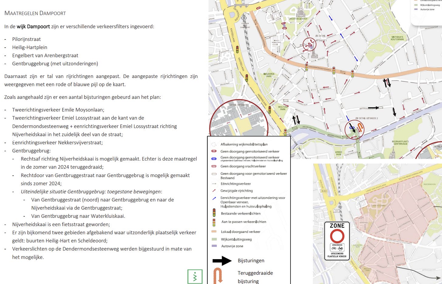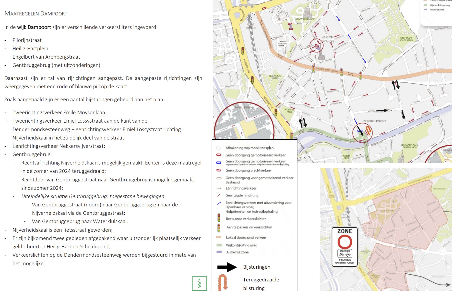 Het mobiliteitsplan Gentbrugge-Oud-Dampoort werd in november andermaal aangepast. Belangrijkste wijziging: komende van Gentbrugge kan men aan Gentbrugge-brug andermaal afdraaien richting de Nijverheidskaai. Dat wil zeggen dat men (gelukkig) niet langer moet omrijden via de kleine ring rond Gent.