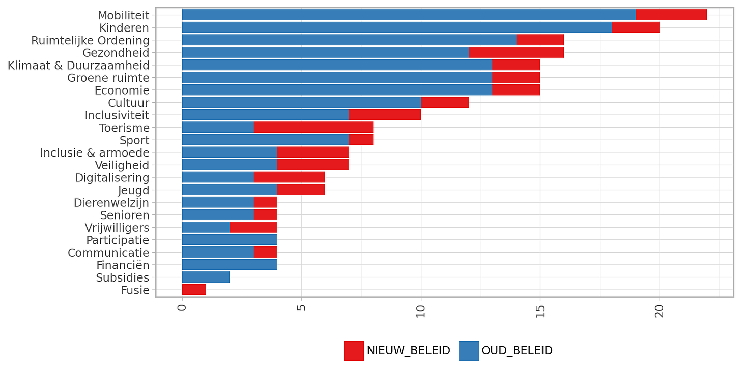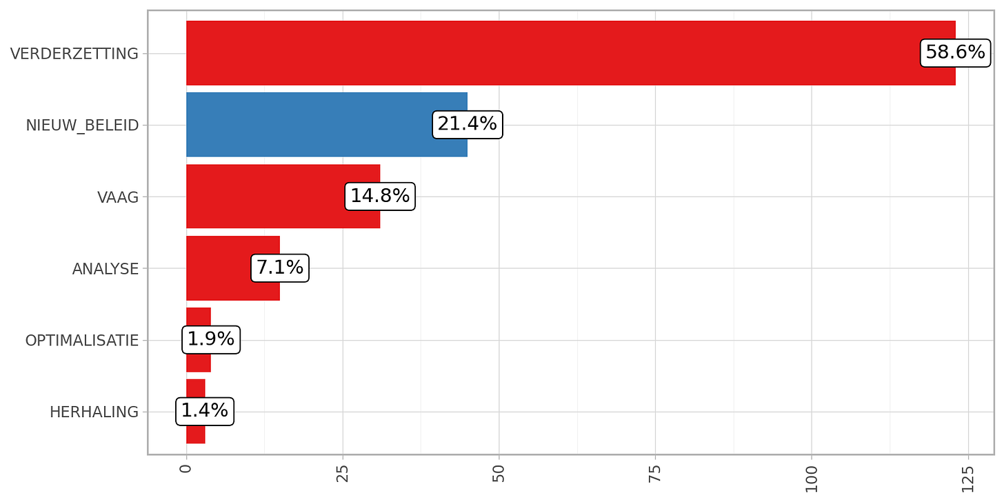 het een verderzetting is van bestaand beleid (omdat het expliciet zo vermeld wordt, omdat het simpelweg de taak is van een gemeentebestuur, of omdat het in het vorig bestuursakkoord stond);